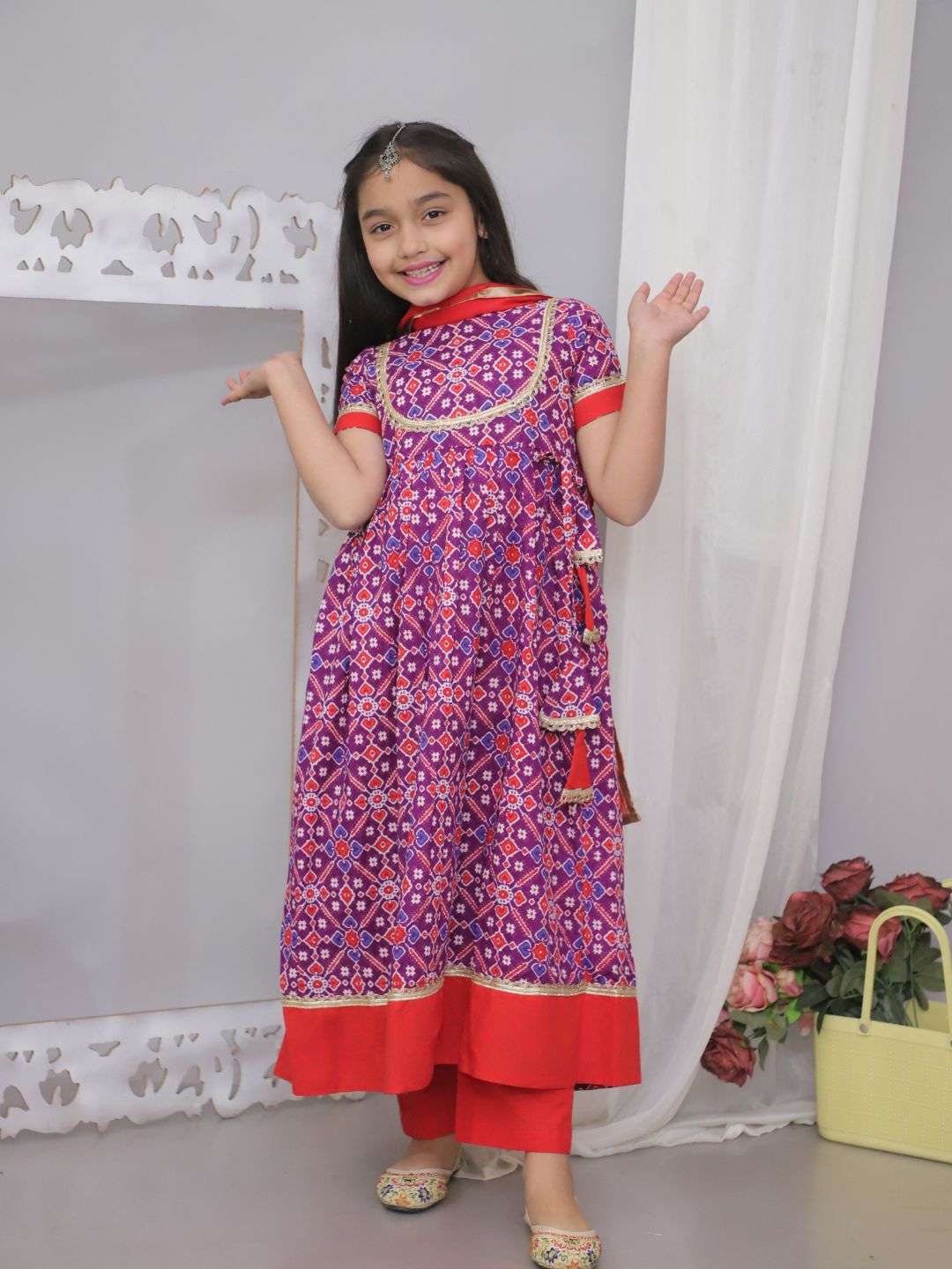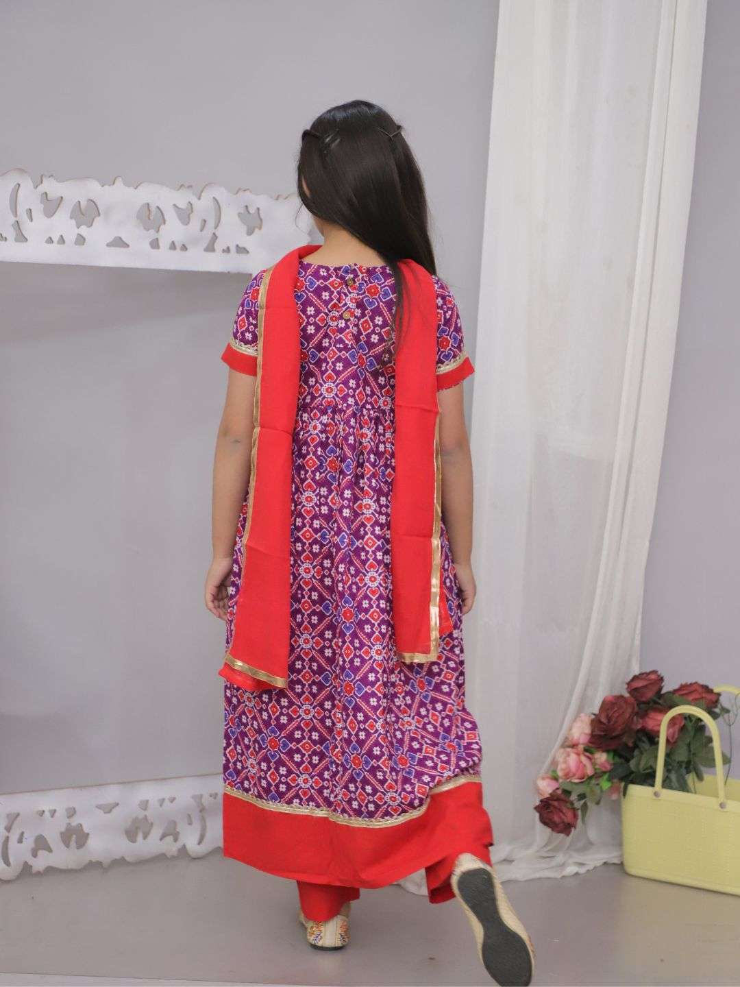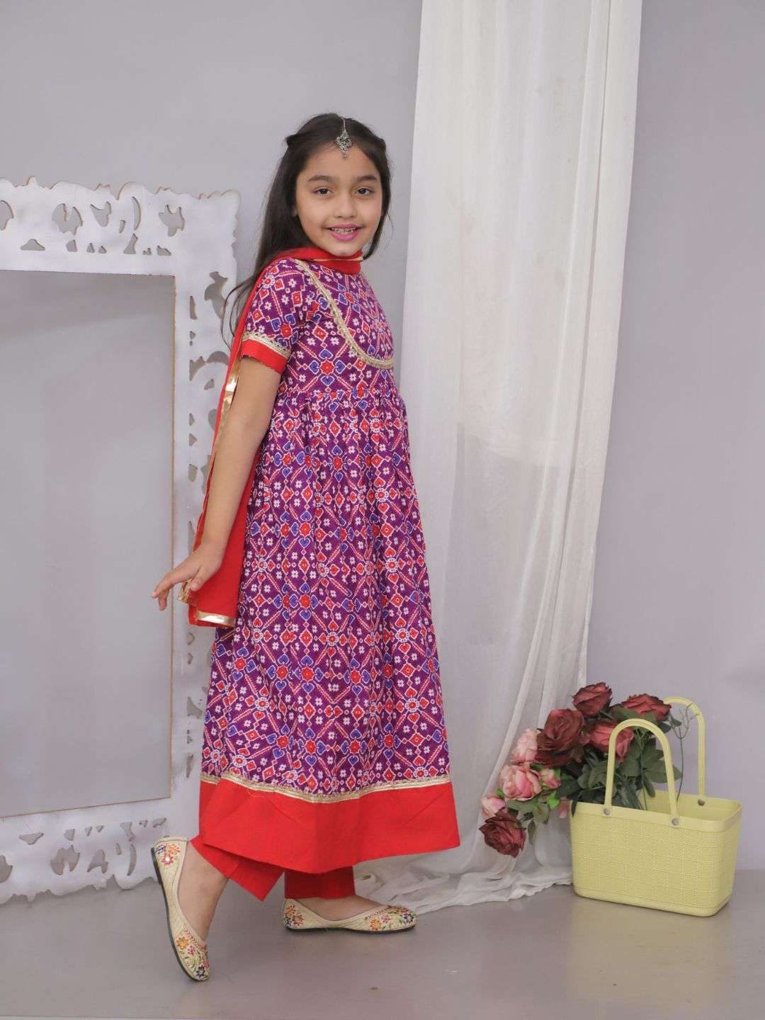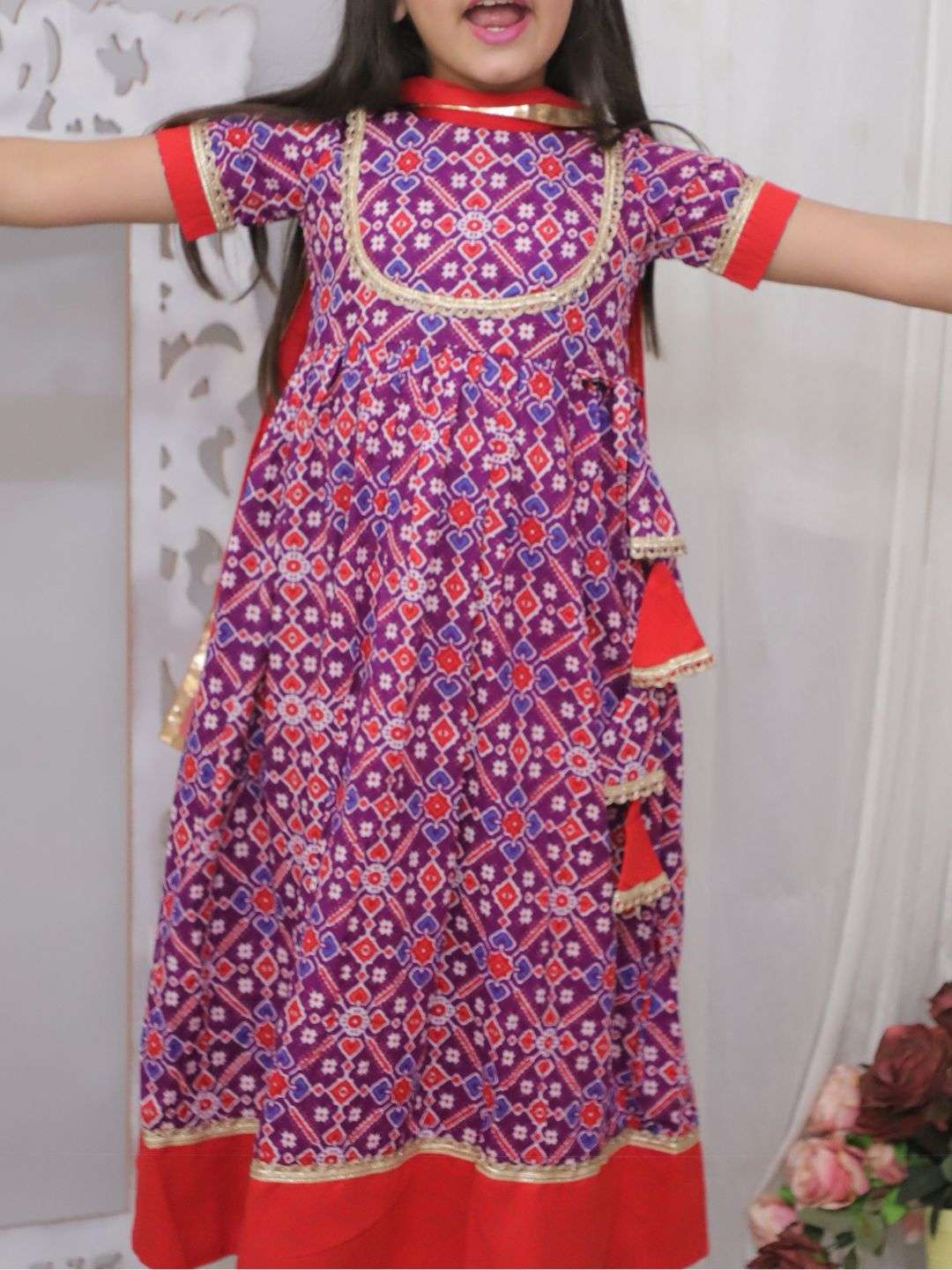 Let your little one shine in this stunning Patola Purple Dress with Dupatta, designed for comfort and style. Made from pure cotton, this outfit ensures breathability and softness, making it perfect for festive occasions, weddings, and cultural events. The vibrant Purple patola print adds a traditional touch, while the matching dupatta completes the elegant look.